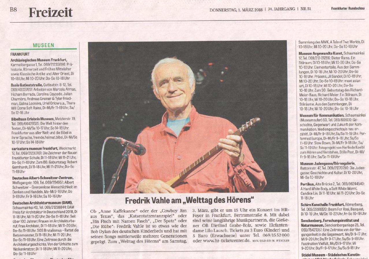 Frankfurter Rundschau: Fredrik Vahle am “Welttag des Hörens”